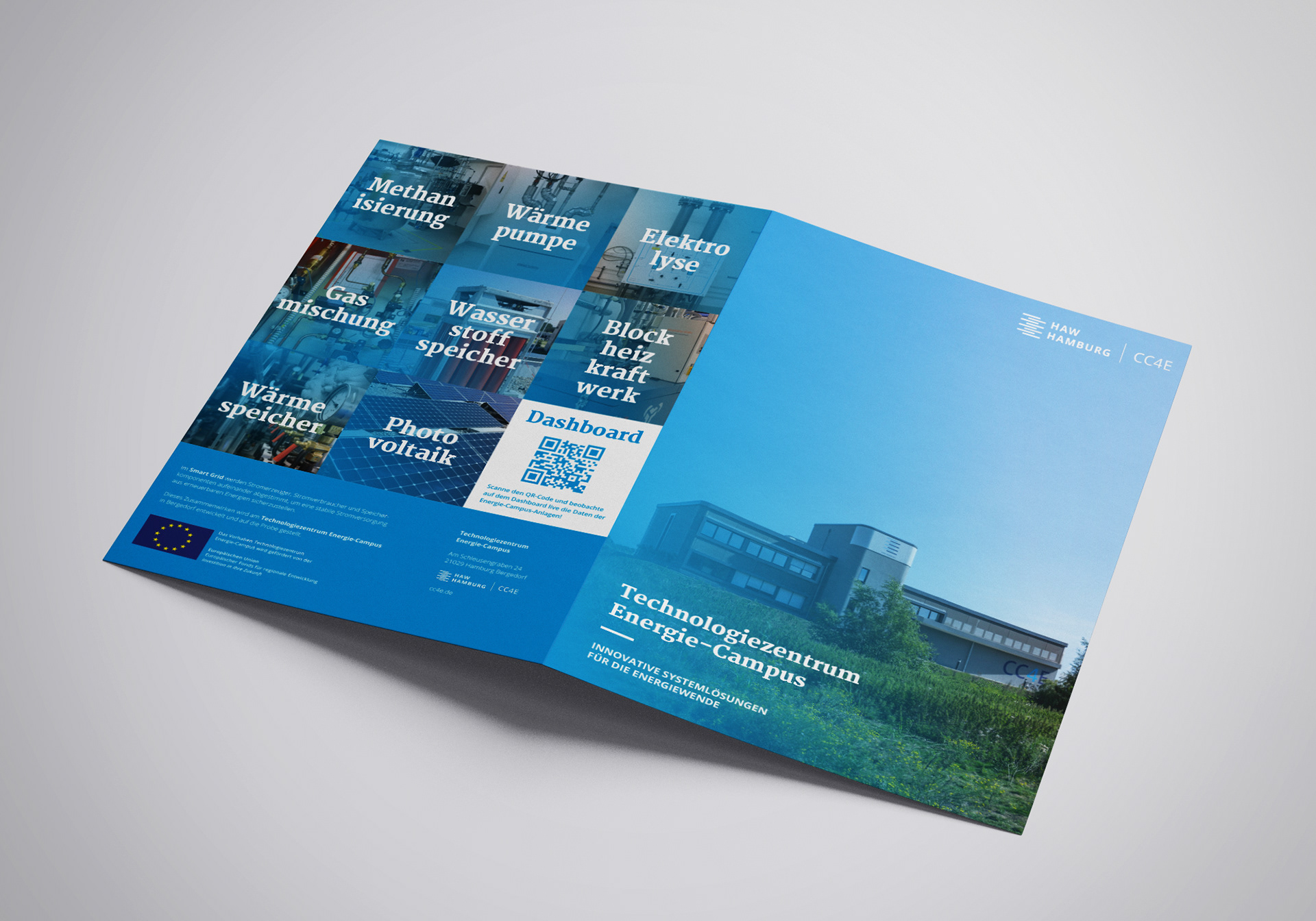 The “Technologiezentrum Energie-Campus” Hamburg Bergedorf is a unique testing site for sustainable energy and building technology. This flyer gives an overview of the various devices involved in the building’s energy cycle, and how they interact.